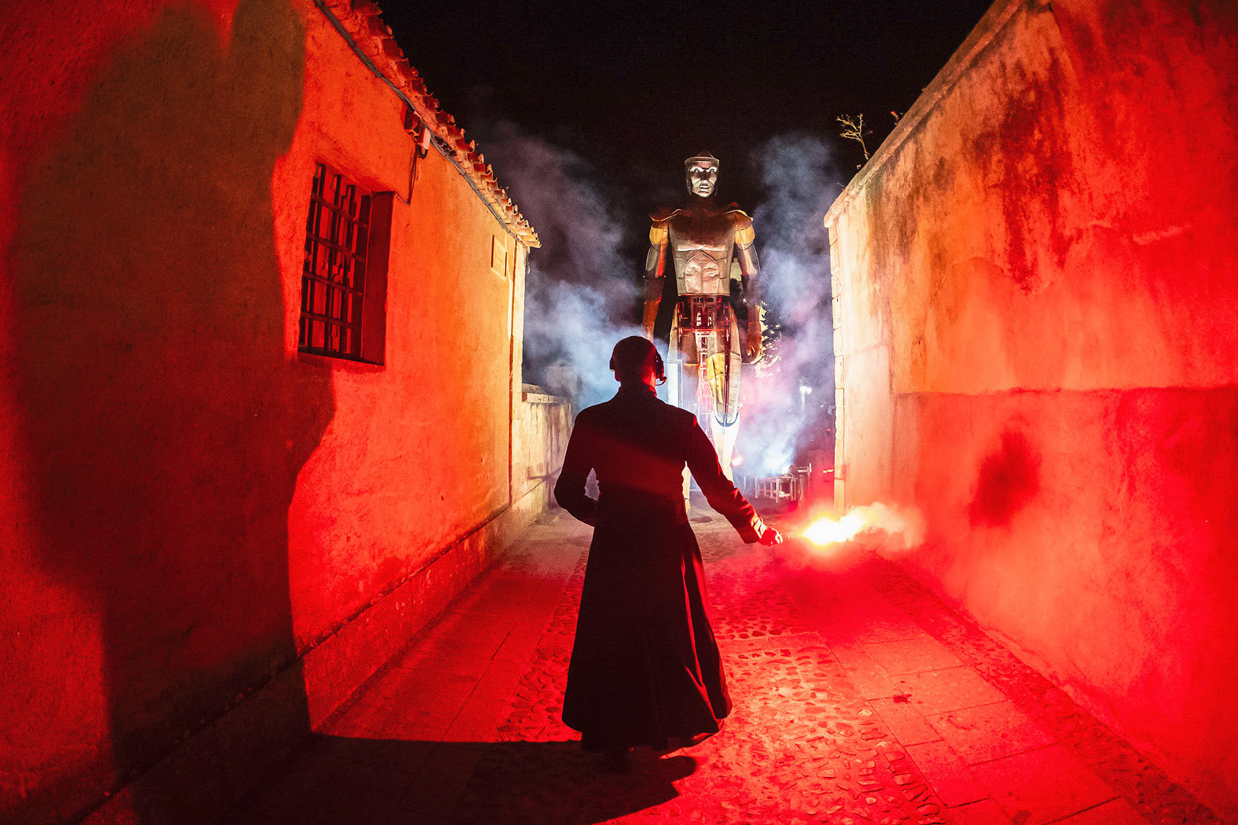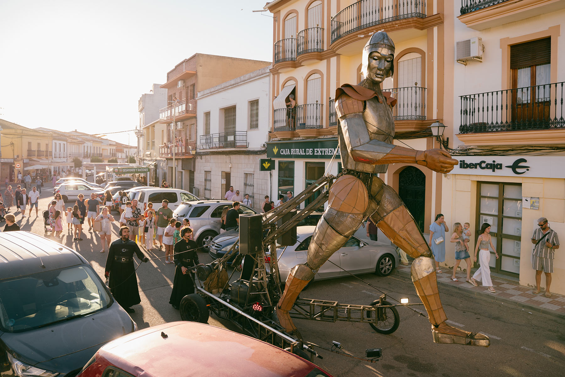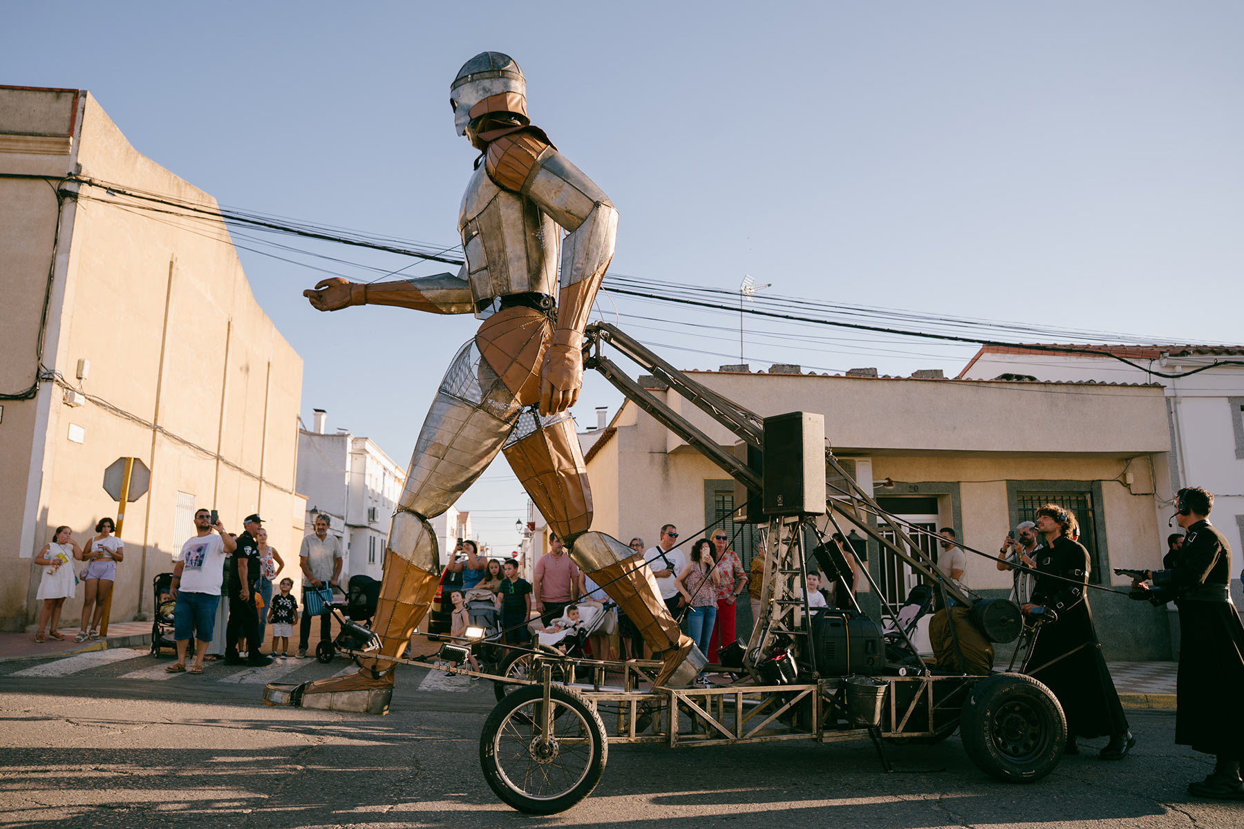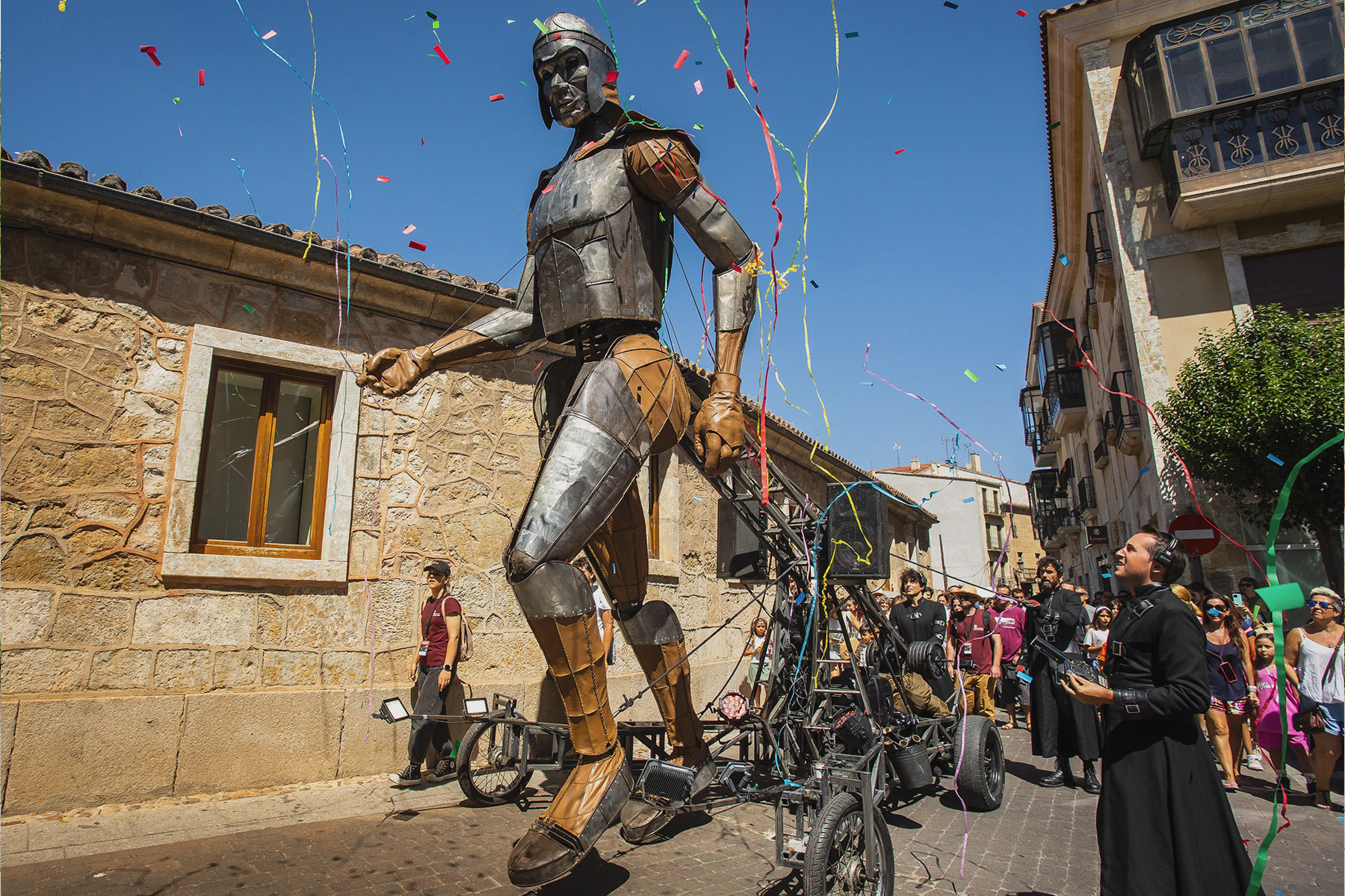 Aquiles se adentra en la ciudad con sus más de 5 metros de altura y sus casi 800kg recorriendo las calles y plazas e irrumpiendo en el día a día de la ciudad. Un espectáculo de enorme impacto visual que deja fascinados a todos aquellos que se acercan a ver cómo Aquiles camina por las calles.